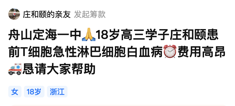 大爱舟山!18岁女孩患白血,仅8小时筹满35万元!