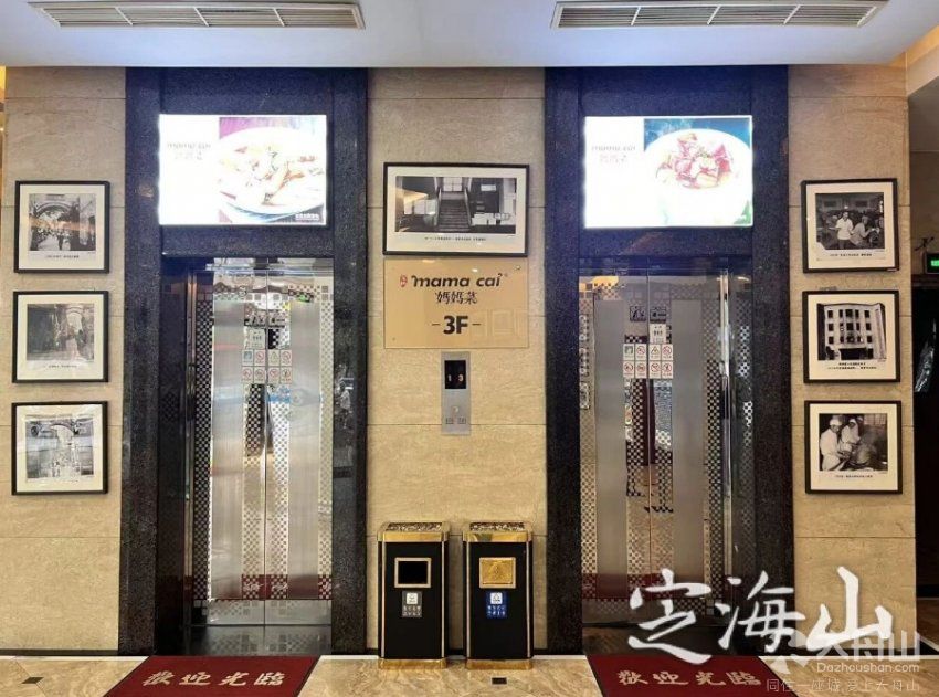 走进一层墙上挂满了定海古城的旧时记忆,俨然成为了一座“时光博物馆”。顺着电梯直达3楼,开门即可到达餐馆。