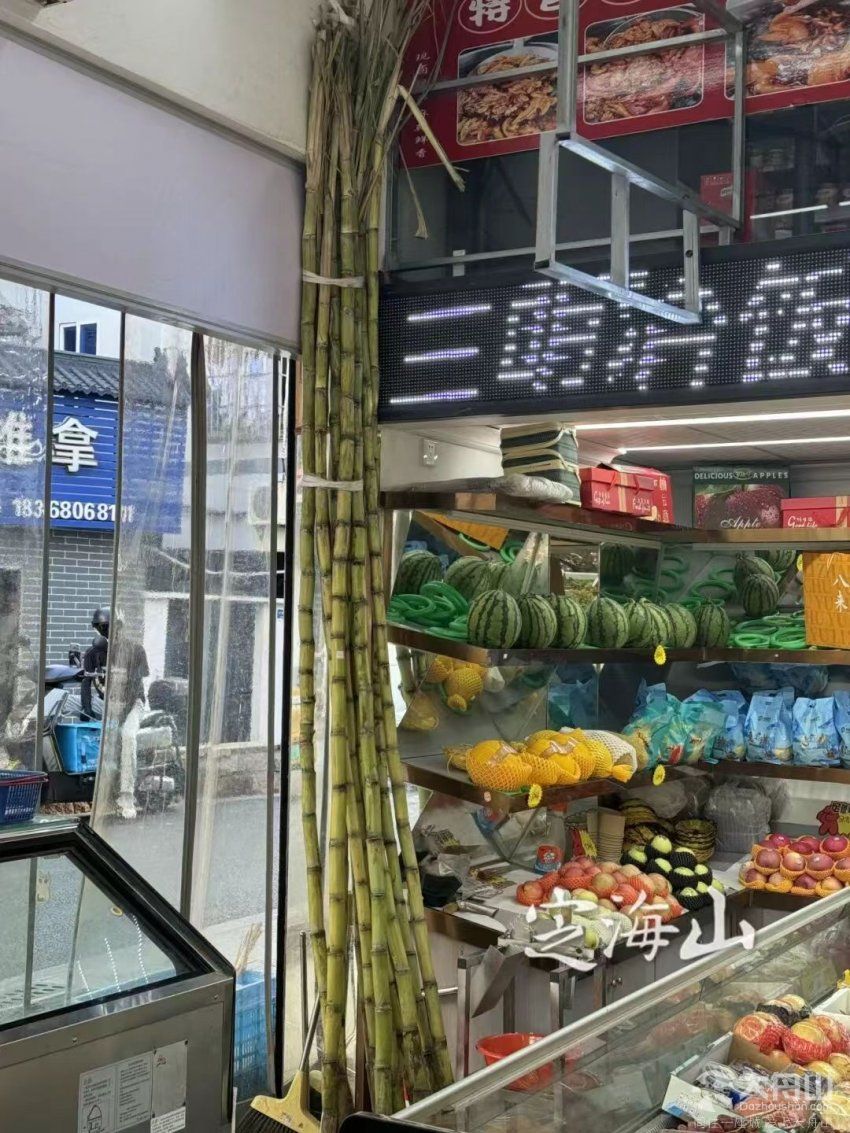 同样将甘蔗放在店铺显眼处